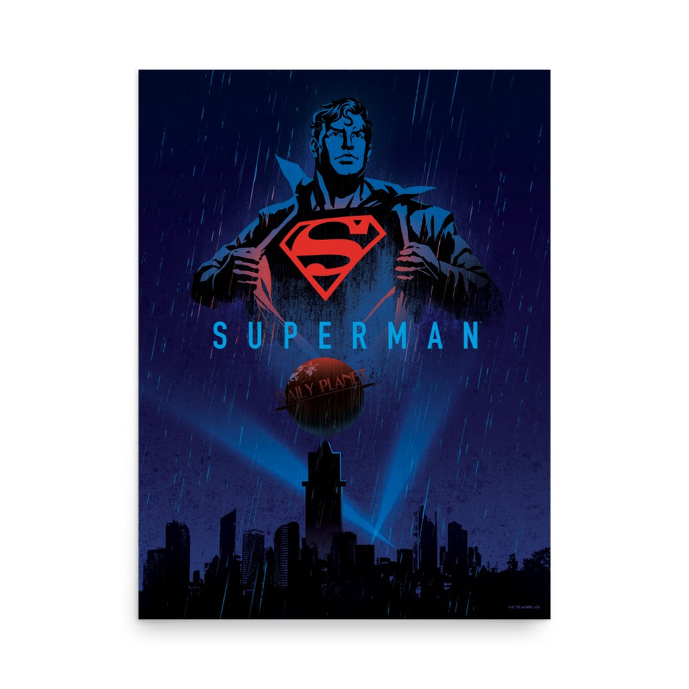 Superman Rainy Metropolis Matte Poster